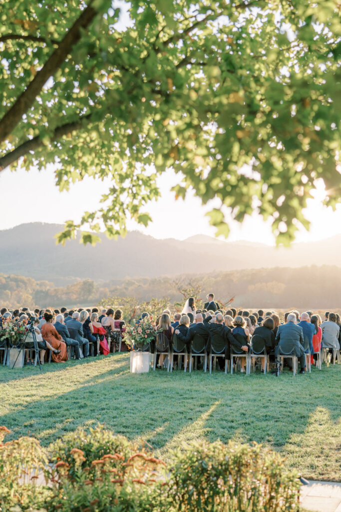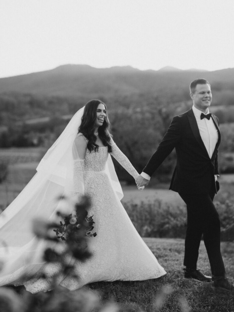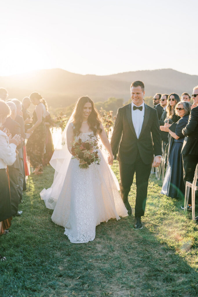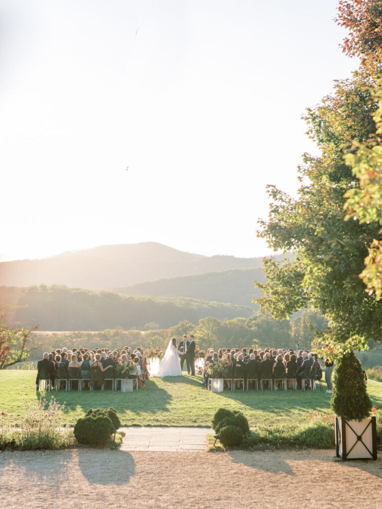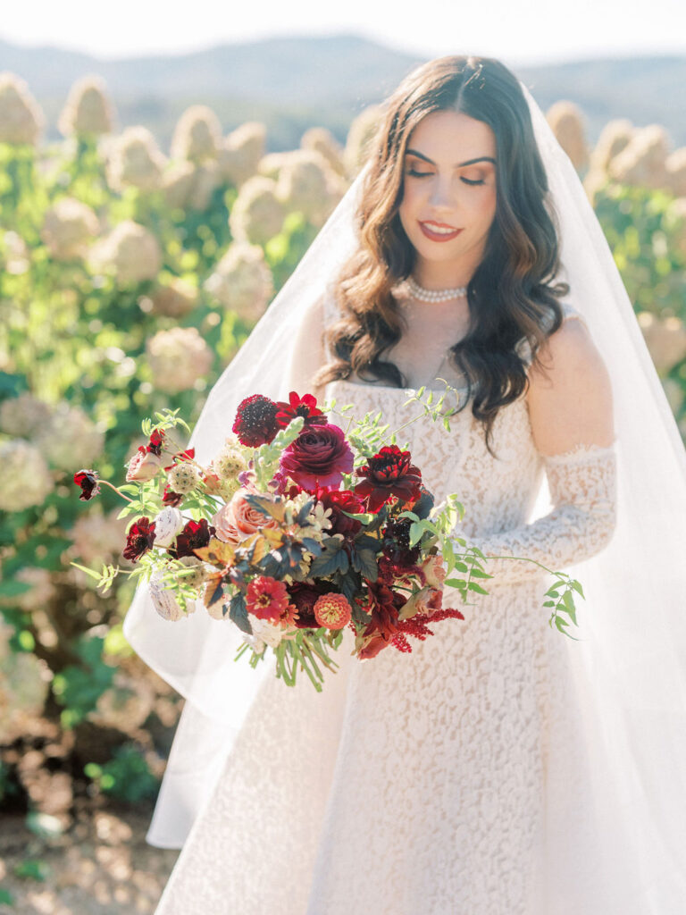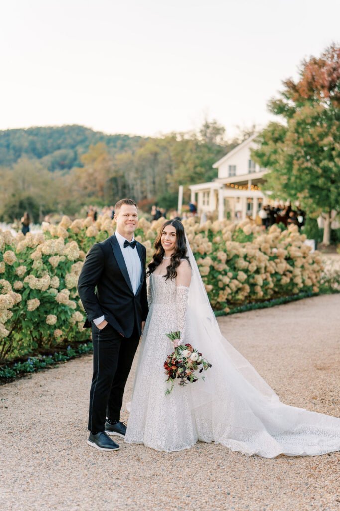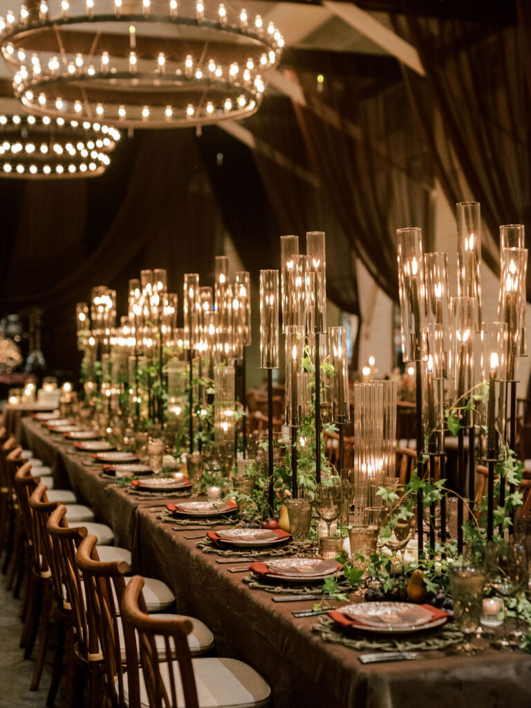 Jess and Christian got married at the iconic Pippin Hill Farm in one of Virginia’s most beautiful months, October. Fall in Virginia is one of my favorite times of the year. Jess and Christian made sure to pay homage with an explosion of moody fall colors and decor. I don’t think I’ve ever seen a Pippin Hill Farm wedding look so unique. The warm chocolate draping, floating candles and deep red florals and cascading greenery were a true experience.